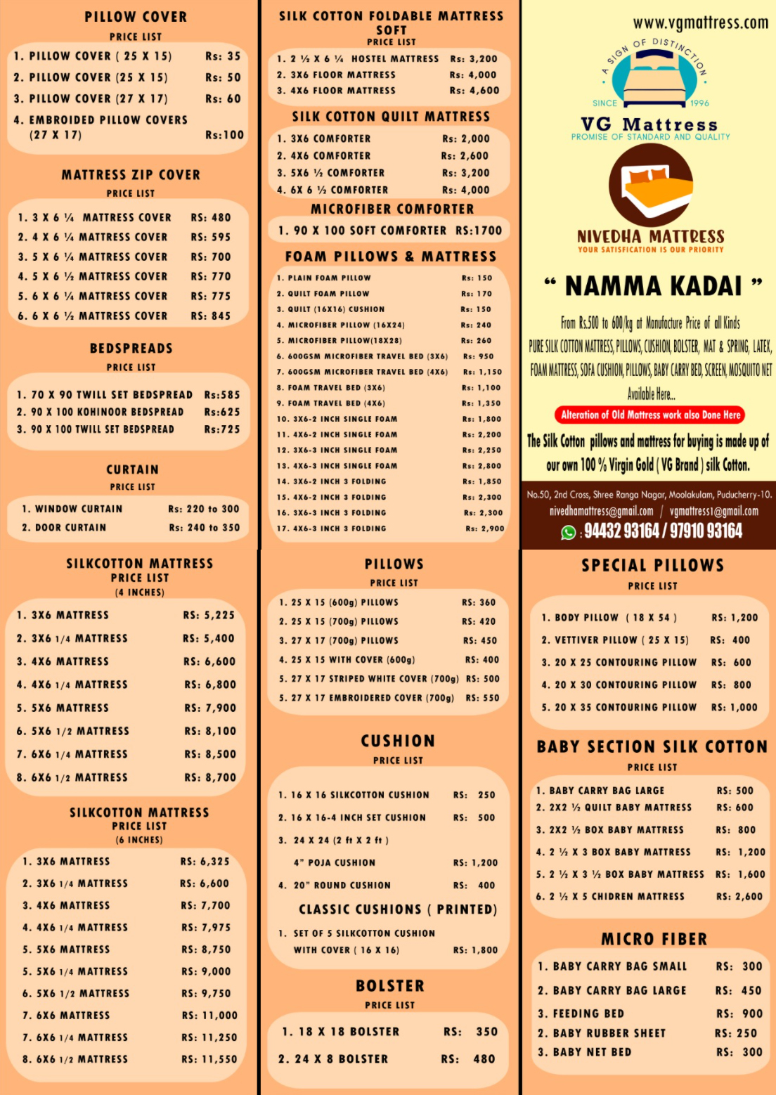 PILLOW | MATTRESS |BOLSTER | CUSHIONS | BABY SECTION | FOAM PRODUCTS